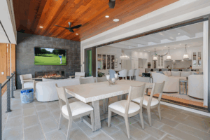 Expansive glass doors open the main living space to the outdoors — blending comfort and connection in one seamless design gesture. It’s the kind of indoor-outdoor living that maximizes natural light and supports year-round entertainment.