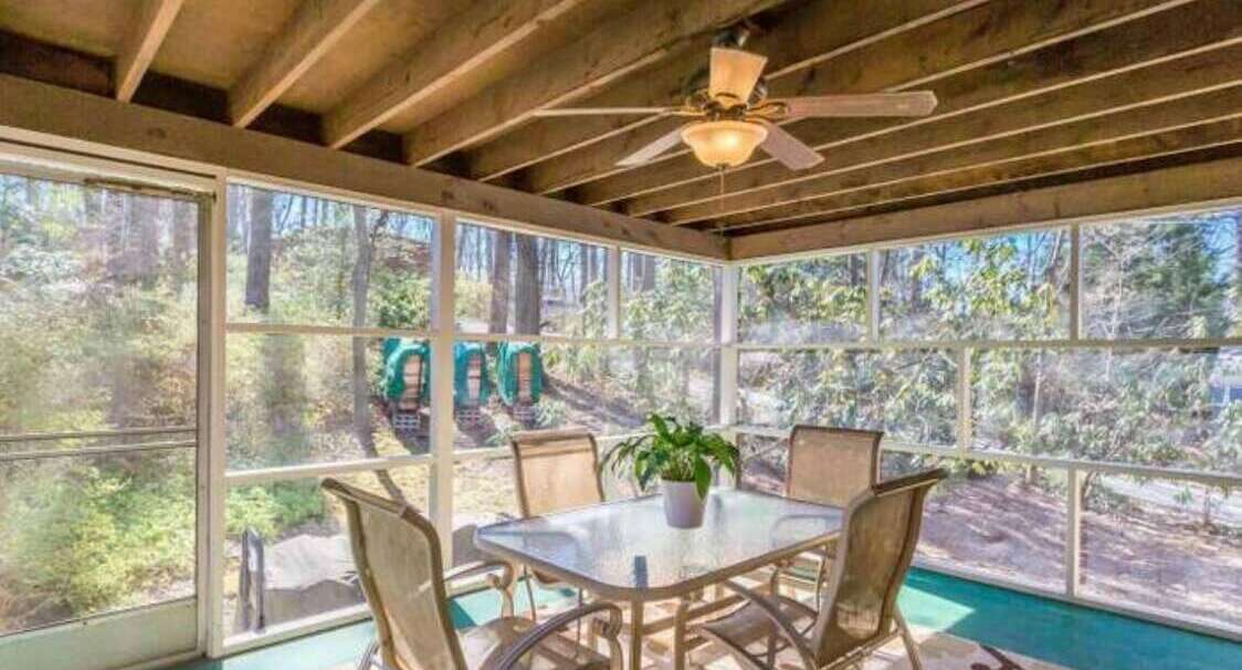 In the heart of the home is the combination family room and kitchen which seamlessly blends modern functionality with exquisite design. The oversize island stands as a focal point, and the strategically placed wet bar, complements the space adding versatility. The pass-through from the kitchen leads to a screened porch enhancing the outdoor entertaining experience.